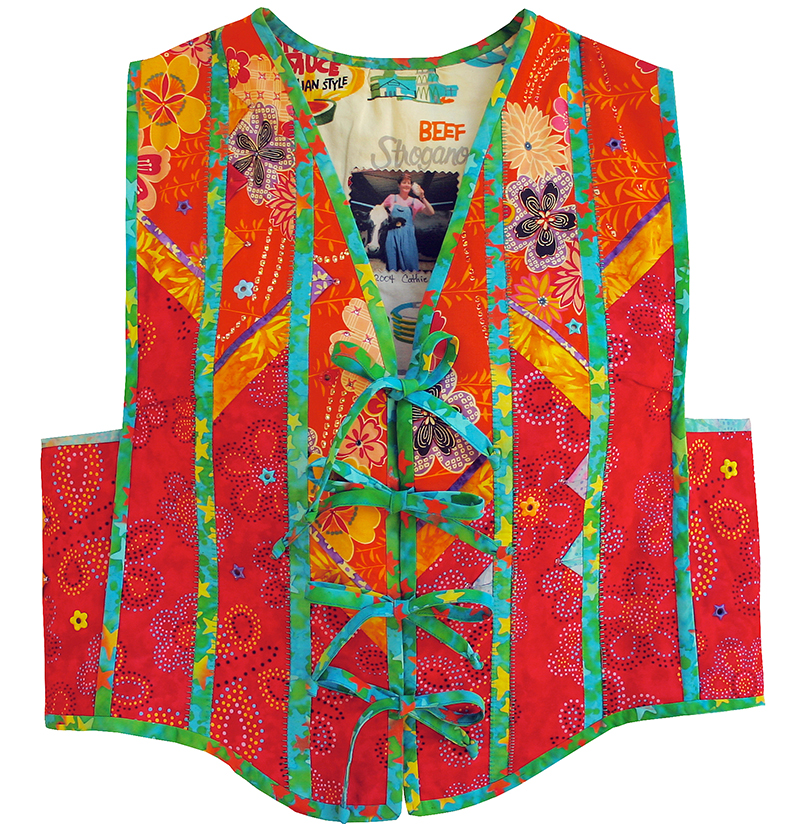 "Cathie brought several of her vests to class, each more beautiful than the last. She measured each class member, and over the next two days the class learned all the ins and outs of creating a wearable art vest – from pattern, to color choices, to piping and appliqué"