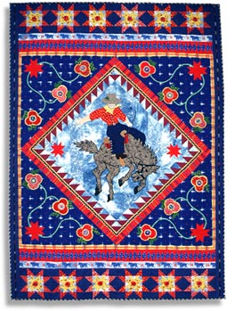 Cathie's work is concise. Her color sense is sure. Her designs are original, but displayed on classic styles. Her pieces are timeless and unique. This coat (Kokopelli's Spirit Horses) is joyful and exuberant! Exhibition Notes from Santa Barbara Historical Museum's exhibit, "Textile Expressions: Contemporary Art Quilts," Feb. 2 – April 16, 2006 |